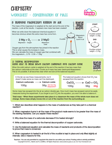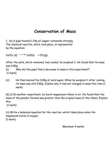 Conservation Of Mass Worksheet Powerpoint Teaching Resources