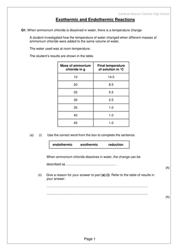 Exo And Endothermic Reactions Tes Exo 2020